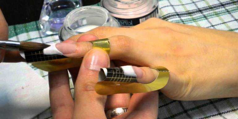 Наращивать акрилом на формы можно девушкам с небольшими своими ноготками. Требуется, чтобы свободный край выступал – под ним осуществляется наклеивание формы. Очень длинный ноготь опиливают или подрезают, чтобы облегчить процедуру наращивания. Использование форм придает маникюру естественность.