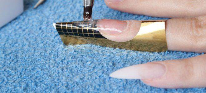 - формы для наращивания ногтей. Формы могут быть бумажными, металлическими или тефлоновыми. Наиболее удобными считаются бумажными, так их не нужно дезинфицировать после каждого использования;