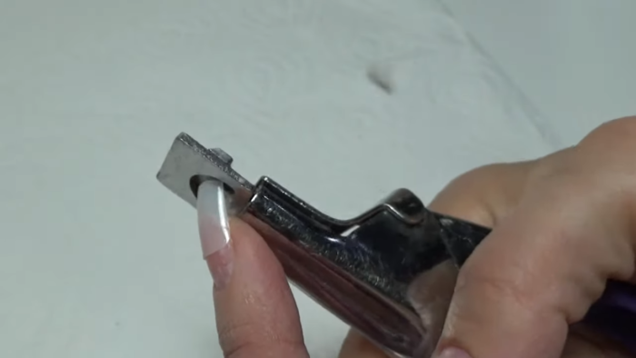 С помощью типсореза оформить необходимую длину ногтя и при помощи пилочки для ногтей запилить края.