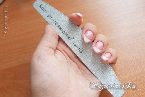 - при помощи пилочки сделать тоньше свободный край ногтя;