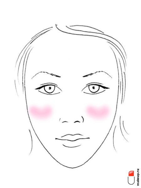 - Треугольная форма лица, достигаемая за счет правильного нанесения румян.