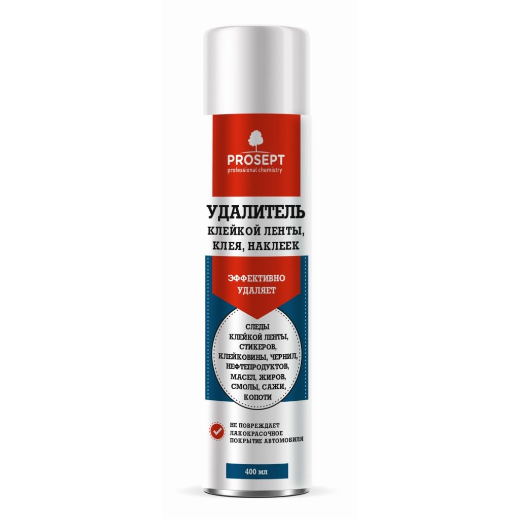 Это средство позволяет быстро убрать не только следы клея, но и следы от жирных, липучих, масляных материалов. Эффективно избавляет от сажи, чернильных пятен и других типов загрязнений. Используют для разных поверхностей, включая лакокрасочные материалы.