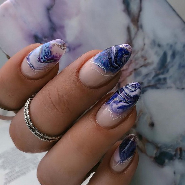Подобный маникюр очень хорошо будет смотреться на миндалевидной, квадратной с округлыми краями или же овальной форме ноготка.
