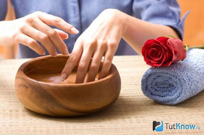 - Солевая ванночка. Используется морская соль, которые нужно взять 2 чайные ложки, также стакан горячей воды. Смешайте компоненты, и в раствор поместите руки на 15 минут. После этого промойте водой, и нанесите на пластинку масло кедрового ореха. Вместо него можно еще использовать какой-либо питательный крем, в частности, подойдёт “Ореховый” крем.