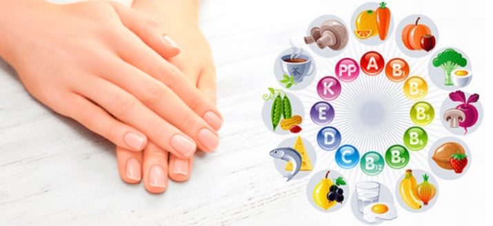 Среди основных витаминов, которые положительно сказываются на состояние ногтевых пластин, считаются витамины А, Е, С и В.