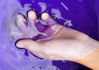 - Спустя десять секунд снова погружаем руки в парафин.
