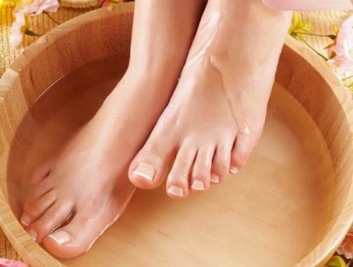 Воду предварительно следует разогреть до комфортной вам температуры. После добавления туда соли моря, не забудьте капнуть 5-6 капель эфирного натурального масла лаванды или розмарина, которые помогут устранить неприятный запах ног и снять напряжение после трудного дня.