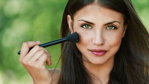 Придать свежесть лицу и создать здоровый румянец помогут румяна. Они должны быть светлые: розовые или персиковые. Для дневного макияжа подходят сухие компактные румяна и кремообразные.