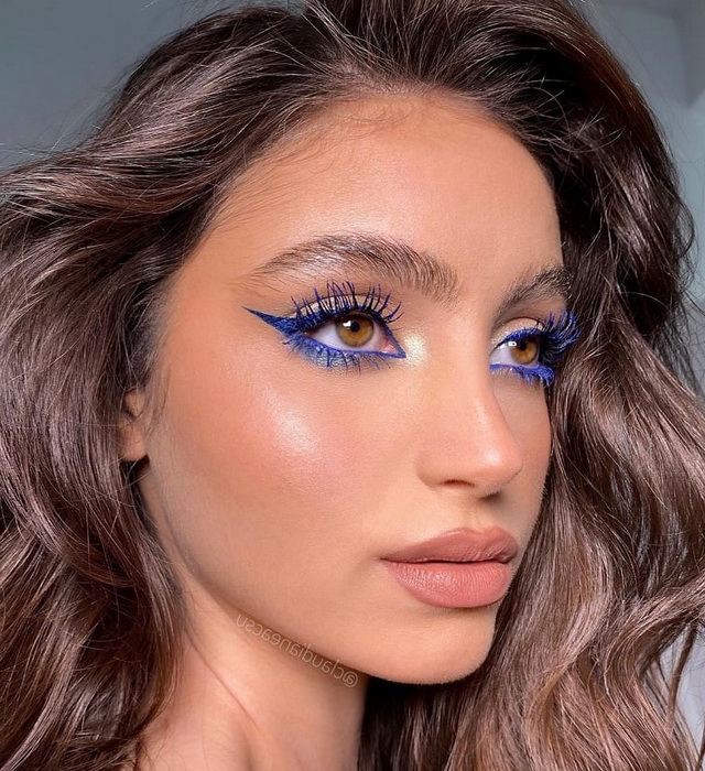 Нюдовые губы и синяя подводка для глаз