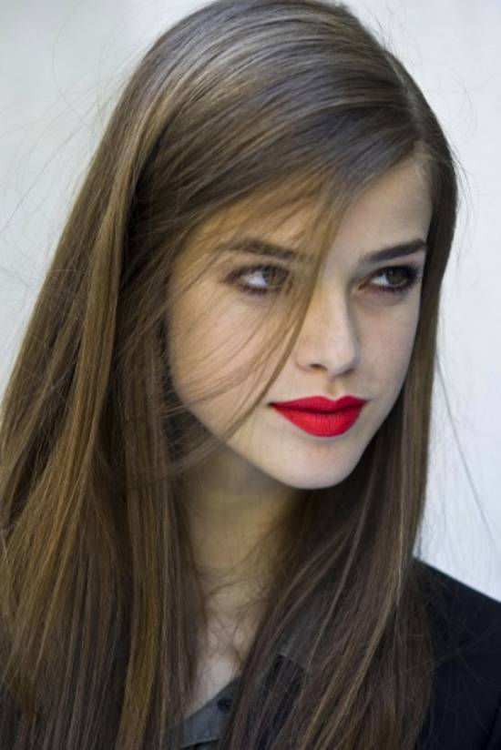 Женщинам со светло-каштановыми волосами следует обращать внимание на помаду персиковых и абрикосовых цветов, не забывая периодически применять коричневые и алые тональности – беспроигрышные варианты для большинства цветотипов
