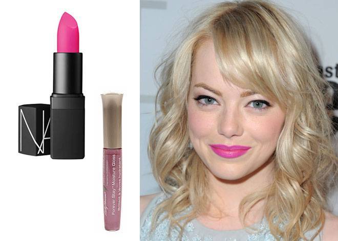 1. Блондинкам с нежно-белей кожей хорошо подойдут все ненасыщенные оттенки розового. Для создания дневного макияжа лучше использовать помаду персикового цвета или розового, а вот для вечернего макияжа — помаду сливового или кораллового цвета. Главное, чтобы все эти цвета были ненасыщенных оттенков, в противном случае вы будете чересчур бледной. Такому цвету волос следует воздержаться от ярко-розового, оранжевого и ярко-красного оттенка помады.