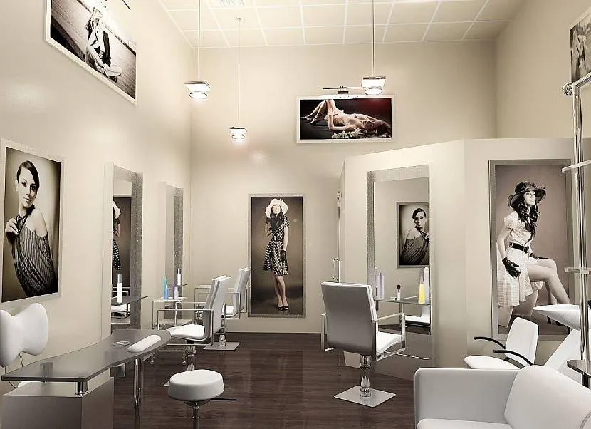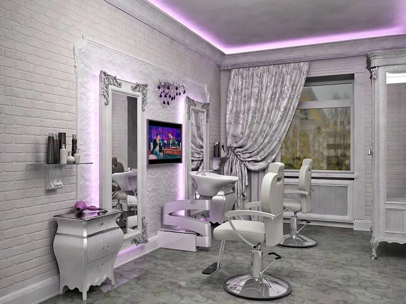 - Хай-тэк. Данное направления подходит для многофункциональных салонов красоты: с наличием парикмахерской, визажа и ногтевого сервиса. Такой стиль позволяет создать индивидуальное зонирование для каждого отдельного мастера.