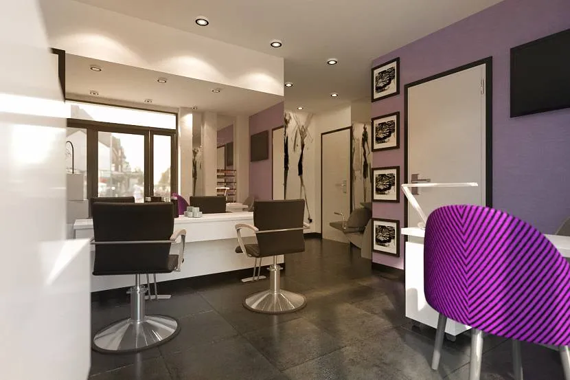 Интерьер салона красоты в лиловом цветеИсточник oselya.ua