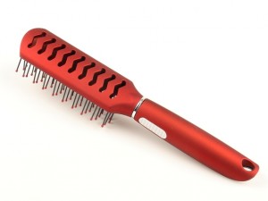 Известная всем расческа с деревянной или пластиковой широкой ручкой, с овальной или прямоугольной рабочей поверхностью. Небольшие зубчики на прорезиненной основе расположены в несколько рядов. На пластмассовых, металлических или деревянных зубцах круглые наконечники, которые и обеспечивают массажный эффект. Вот тут мы и подошли к «врагу» наших локонов – массажной щетке с металлическими зубчиками без наконечников, это тот прибор, которого в доме не должно быть у тех, кому необходимы здоровые и красивые волосы. Острые металлические зубчики повреждают волосы и кожу головы, способствуют электризации локонов. Сами зубчики могут быть металлическими, но у качественного прибора сверху имеются наконечники в форме капелек.