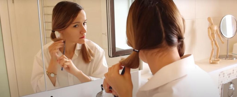 2. Чтобы разобрать волосы на пробор сзади, можно воспользоваться вторым зеркалом. Можно попросить кого-то из домочадцев либо сделать его на ощупь.