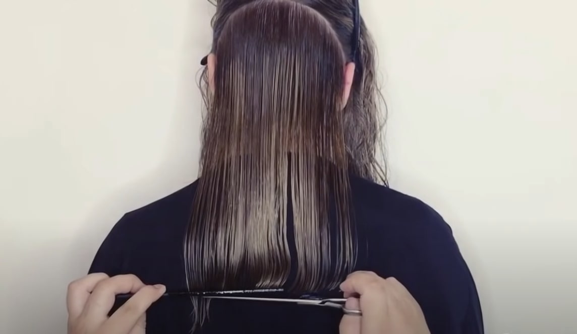Вы заметите, что внутренние пряди в разы короче внутренних, теперь наша задача укоротить концы и сделать их ровными.