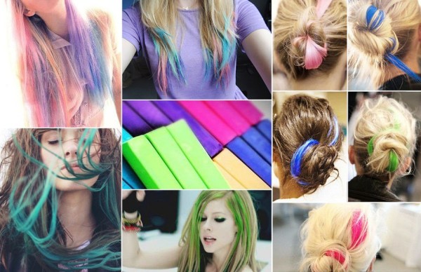 - Специальные мелки, тени и туши – такие средства представлены в разнообразных цветовых вариантах – от белого до черного, но большинство из них позволяют покрасить волосы в яркие оттенки.