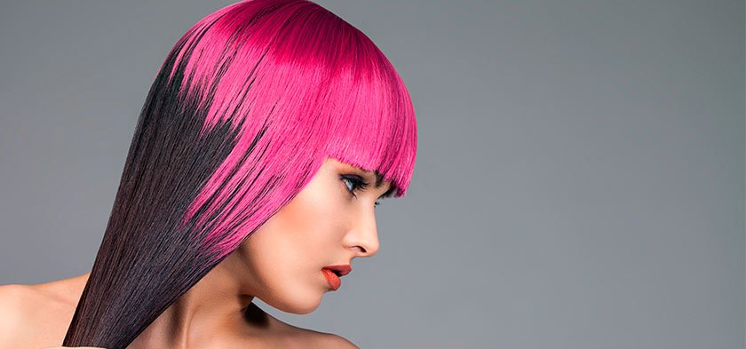 Если вы не боитесь экспериментов, отличаетесь смелостью и готовы к смене образа, двойное окрашивание – для вас! Суть этой техники в том, что волосы делятся на равный пробор (вертикальный или горизонтальный) и окрашиваются в контрастные друг другу цвета. Такую технику нельзя назвать тривиальной, поскольку требуется точность и аккуратность нанесения краски, однако результат превосходит все ожидания. При помощи двойного окрашивания можно визуально увеличить густоту волос за счет контрастных цветов и бликов, добиться красивых переливов цветов в прическе.