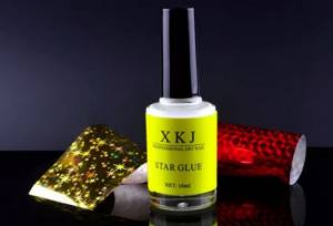 Клей для фольги на ногти используется специальный. Нельзя заменить на другой, иначе испортится вся процедура. В своем составе имеет специальный полимер, защищающий плоскость от излучений, не вызывающий аллергических реакций. Для примера можно выделить такие виды: