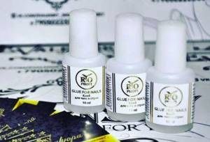 | Rio Profi | Продается в непрозрачных ёмкостях по 10 мл. Можно купить 1 пузырек, а можно приобрести набор из 4 ёмкостей. Клей вязкий, равномерно распределяется по ногтю. Сохнет менее чем за 3 мин. Не требуется сушка под лампой. | 167 руб. |