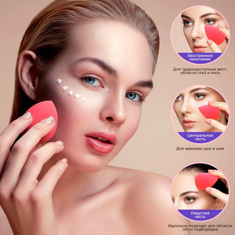 Очень удобно с помощью этого спонжа корректировать недостатки кожи. Часто в наборе с пудрой реализуются именно такие инструменты.