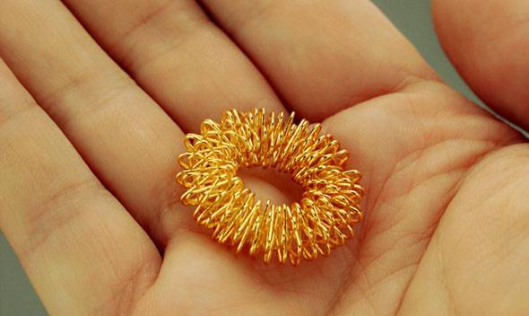 Если хотите, можете себе упростить задачу и купить специальное кольцо. Оно надевается как обычное украшение благодаря эластичной структуре пружинок. С помощью такого колечка можно делать эффективный точечный массаж, перекатывая вверх/вниз и воздействуя на нервные окончания.