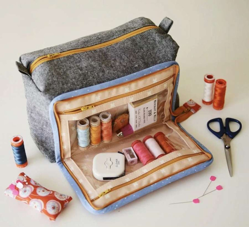 Посмотрите, вы можете взять за основу стандартную косметичку и модернизировать её до уровня органайзера с помощью вставных секций и вшитых карманов. Прозрачный отдел – гениальное решение.