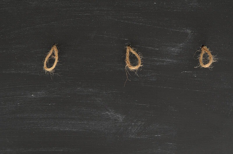 Берем небольшой отрезок доски. В нем сверлим отверстия в которые вкручиваем небольшие ручки для дверец. На ручки привязываем отрезок плотного шпагата. А сзади прикручиваем крепления для подвешивания изделия на стену. После подвешивания органайзера на нить можно вешать очки.