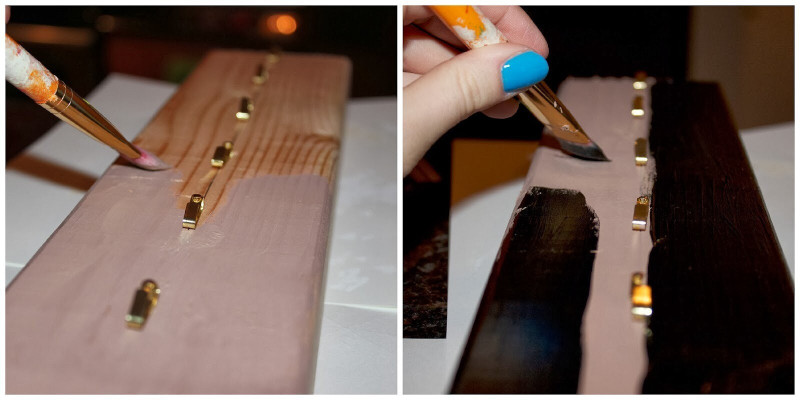 Если хочется придать изделию интересный рельеф и фактуру, перед окрашиванием можно, к примеру, наклеить полоски страз.