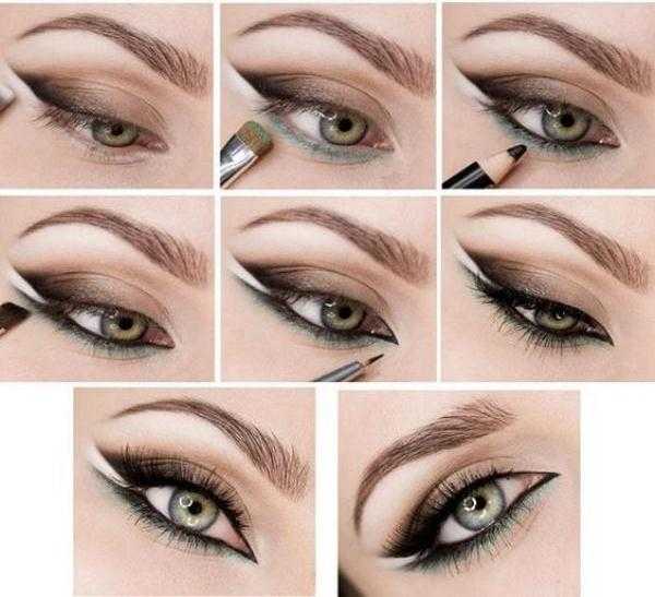 - Начните с подчеркивания нижнего века и внутреннего уголка глаза с помощью черного карандаша.