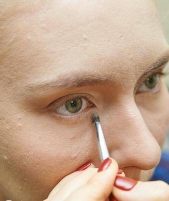 - Черными тенями обозначьте внешний уголок глаза и не забудьте про растушевку.