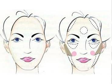 Для лица квадратной формы косметическое средство наносят по всей поверхности, обязательно снизу вверх, растирая в сторону висков. Средство распределяют на верхние и нижние скулы, а также на боковые части лба.