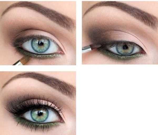 - Мерцающими зелеными тенями или карандашом выделите нижнюю слизистую поверх линии карандаша.