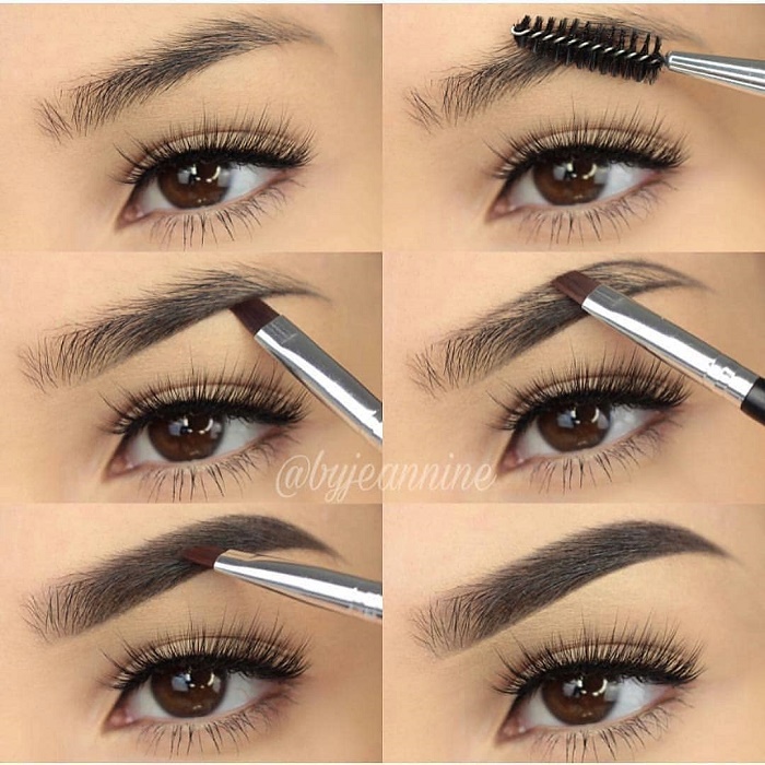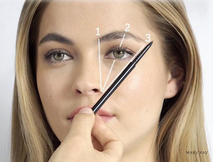 Перед выполнением мейка кожа очищается, обезжиривается. После этого волоски расчесываются, укладываются в требуемом направлении. Далее рисуется основной контур. Впоследствии заполняется пространство волосковой зоны, тон тушуется. Не следует выходить за пределы дуги. Излишки средства удаляются средством для снятия макияжа.