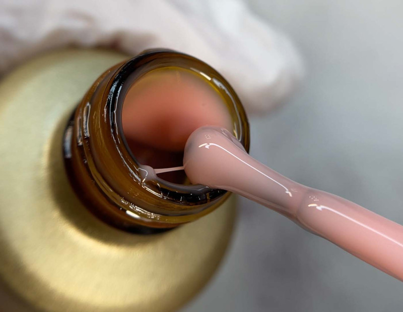 - Камуфлирующий гель нежно-розового цвета, близкого к оттенку естественного ногтя. Он не такой плотный, как базовый и применяется для моделирования формы ногтя.