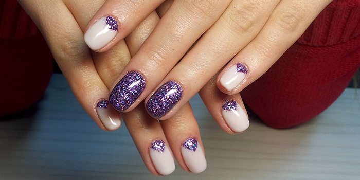 Для закрепления полимеров геля необходимо выдержать ногти несколько минут под УФ-лампой. Нанести и полимеризовать слой декоративного гель-лака. Нанести финишное покрытие, высушить в УФ-лампе и снять дисперсионный слой клинсером. По окончанию маникюра втереть в кутикулу увлажняющее масло.