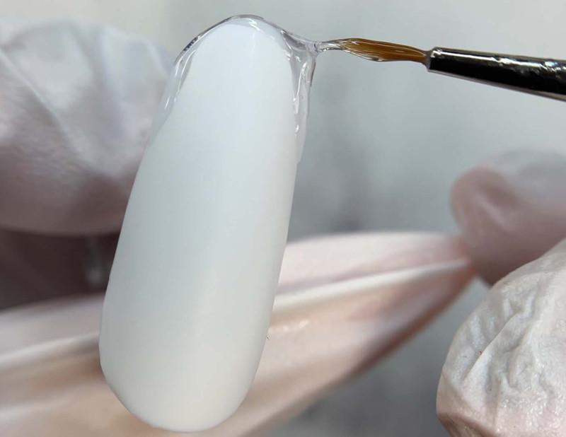 - Базовый гель потому и называется базовым, что он формирует основу наращенного ногтя. С него начинается процесс. Он плотный и полупрозрачный.