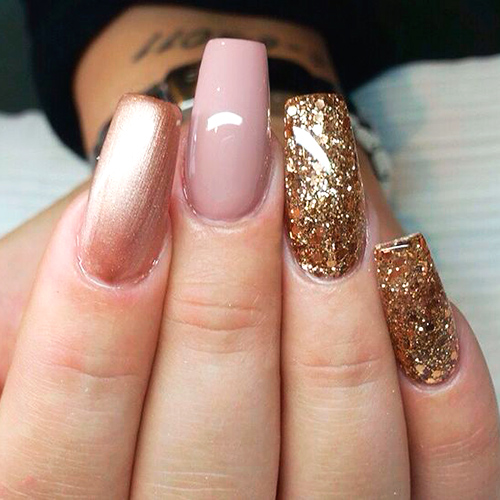 Если нужно, чтобы маникюр держался на ногтях дольше, можно попробовать гель-лак с глиттером. Отличие от обычного лака состоит лишь в необходимости сушки в УФ-лампе. Такой маникюр выглядит роскошно и изящно.