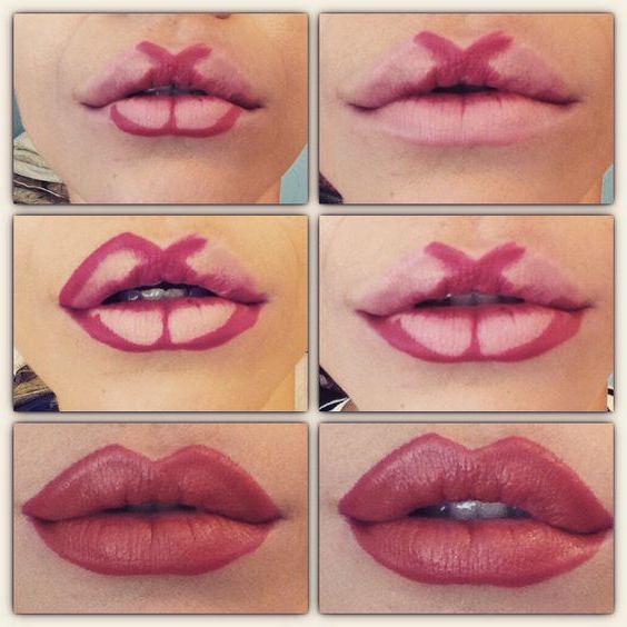 Эта техника подойдет для обладательниц маленьких и средних по размеру губ. Увеличение губ происходит в места, где рельеф менее выражен. Однако не стоит сильно уходить от естественного контура губ — максимальный отступ от контура не должен быть шире грифеля карандаша.