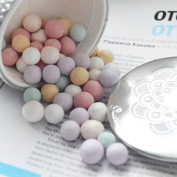 С пудрой в шариках все еще проще: нужно пройтись кисточкой по поверхности шариков и нанести продукт на кожу лица.