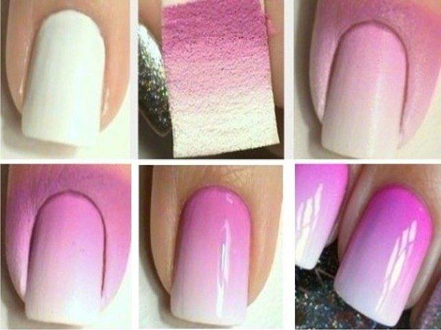 Для этого сначала необходимо нанести два лака и дождаться их полного высыхания. Затем взять третий, контрастный цвет и накрасить им губку для визажа. После этого аккуратно припечатайте его на ногте чуть выше середины. Поправьте результат, если переход получился слишком резким. Еще одним тоном покрасьте кончики. Дождитесь пока рисунок высохнет и покройте прозрачным закрепителем.