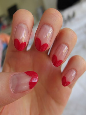 Есть и ещё один вариант лунного маникюра. В этом случае лунка ногтя оформляется треугольником. Сделать этот дизайн ещё проще. Для этого возьмите кисточку с лаком и окрасьте ноготь по косой с одной и с другой стороны. Таким образом у вас получится треугольная лунка. Готовый маникюр покройте бесцветным лаком.