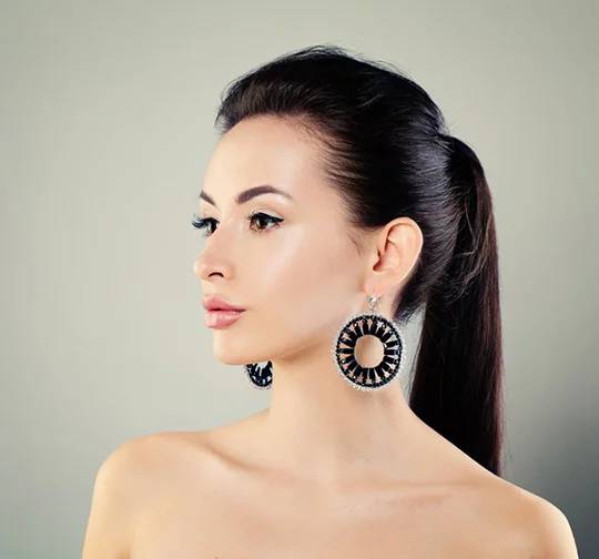 Брюнетки — идеальные кандидаты для конских хвостов. Для официального мероприятия или в офис сделайте высокий хвост с гладкой основой, для вечеринки — хвост с начесом спереди. А если у вас в планах свидание, заплетите от основания хвоста расслабленную косичку и не забудьте выпустить женственную прядь у лица, слегка накрутив ее на плойку.