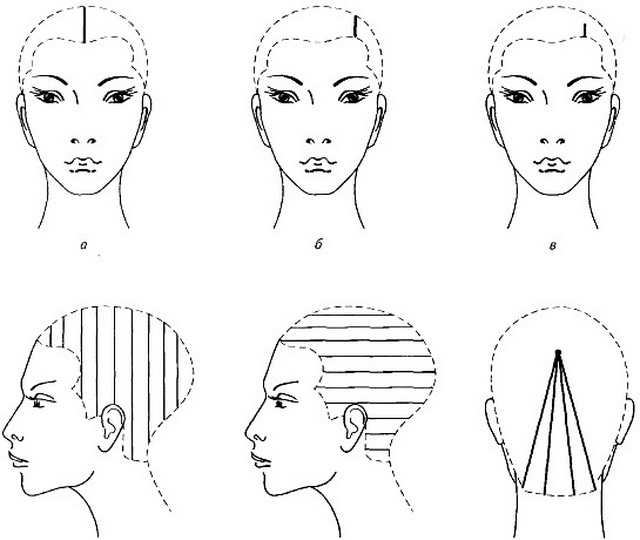 - Фигурный пробор — пробор, состоящий из нескольких прямых линий, которые вместе образуют рисунок.