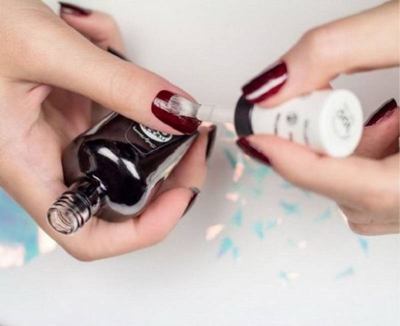 - Покройте ногти лаком и подождите его высыхания. Помните, что на тёмных оттенках дизайн смотрится ярче.