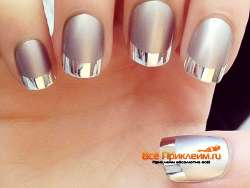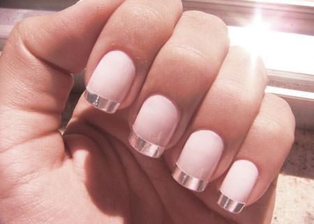 Одна из вариаций френча — декорирование свободного края ногтя фольгой.
