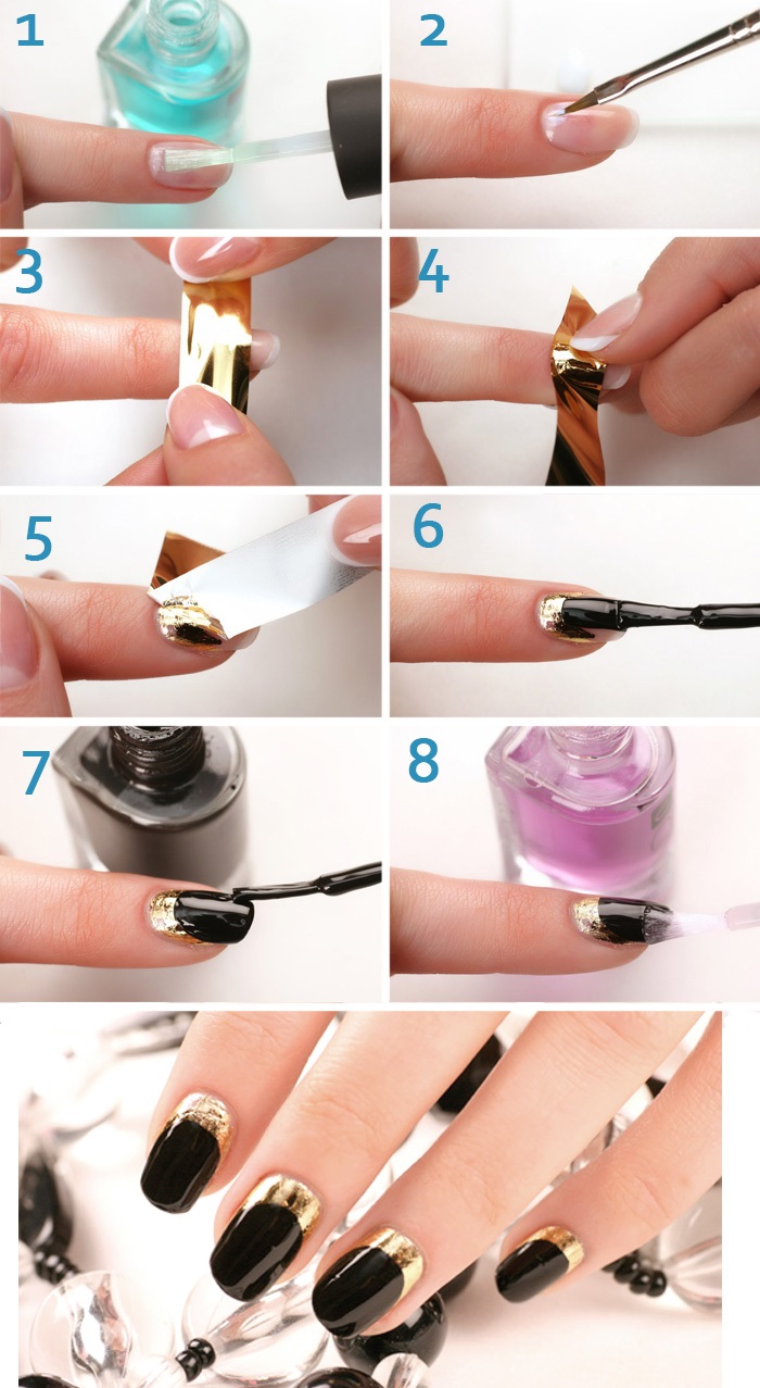 Вот несколько наиболее популярных вариантов, как наклеить фольгу на ногти.