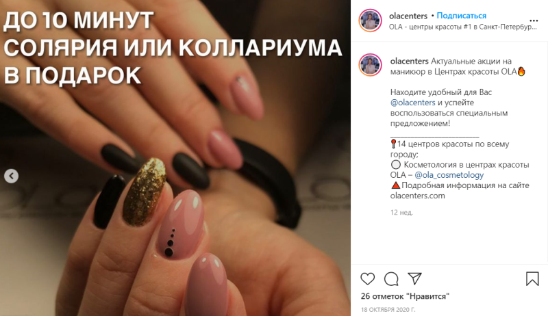 До появления постоянной базы заказчиков такие продающие посты должны составлять не менее 70% от всех ваших материалов. Представители ЦА увидят эстетику и высокое качество итогового результата, после чего наверняка захотят записаться к вам на процедуру. Для повышения конверсии советуем не ограничиваться исключительно визуалом, а добавлять подпись как минимум с названием услуги и ценником.