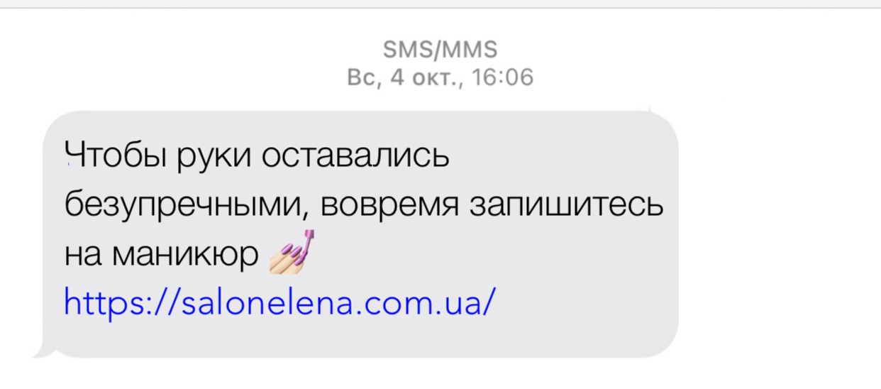 - Постпродажные рассылки способствуют повторным визитам. У многих товаров и услуг в beauty-сфере короткий жизненный цикл. Поэтому целесообразно отправить клиенту предложение записаться на следующую процедуру сразу после сеанса. Также можно просто напомнить о необходимости повторного обращения в салон, например, с помощью SMS: