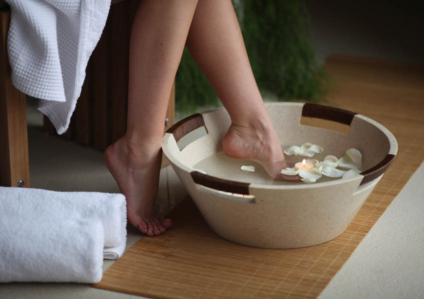 Эфирные масла окажут расслабляющий эффект, а сами ножки после такой ванночки станут нежными и мягкими.
